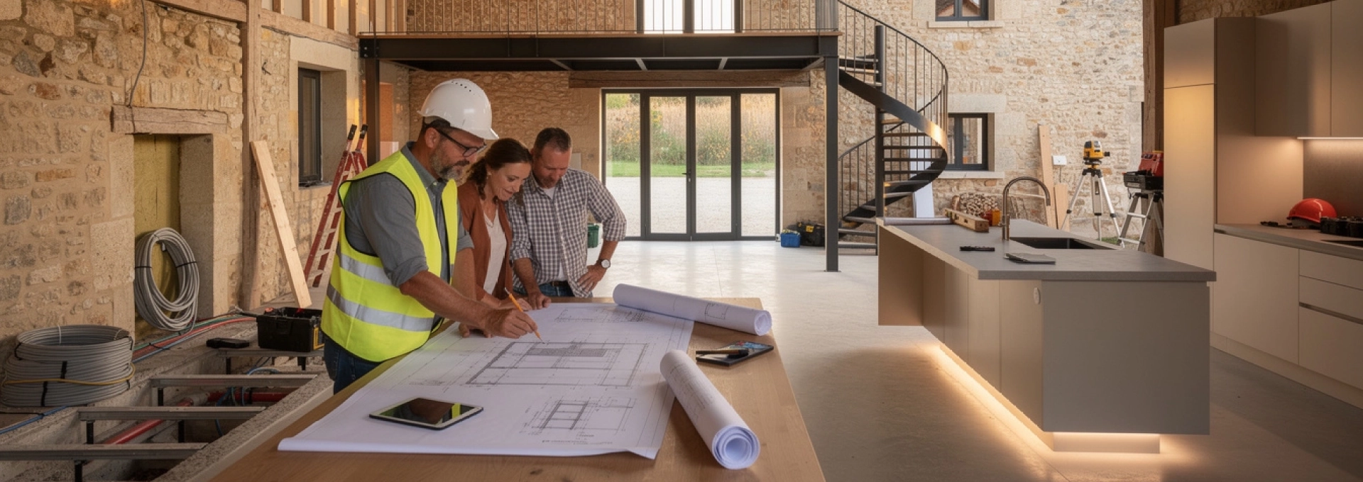 Ce phasage permet, si nécessaire, d’échelonner les investissements dans le temps, voire d’occuper partiellement les lieux pendant que certaines zones restent en travaux. Il est néanmoins recommandé de traiter en une seule fois toutes les interventions qui impactent la structure et l’enveloppe (toiture, ouverture, isolation), afin d’éviter les doublons de chantier. N’oubliez pas d’intégrer dans votre budget les honoraires d’architecte et de bureau d’études (souvent 10 à 15 % du montant des travaux), ainsi qu’une marge pour imprévus de 10 à 20 %. Une grange recèle toujours son lot de surprises : mieux vaut les avoir anticipées financièrement pour conserver la sérénité nécessaire à ce type de projet.